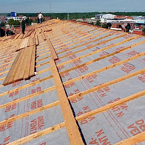 Difüzyona açık, yırtılmaz PP-örme muflon folyo kombinasyonundan 3 katmanlı eğimli çatı örtüsü.