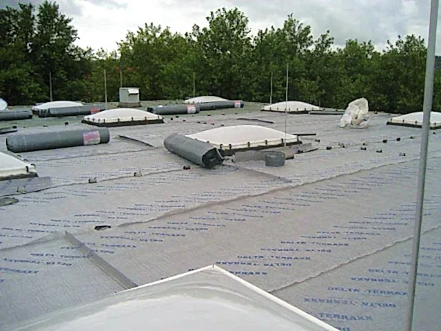 Metal çatı kaplamaları için özel geliştirilmiş ayırıcı katmanlı çatı örtüsü. DELTA-TRELA PLUS olarak kendinden yapışkanlı bindirme kenarları.