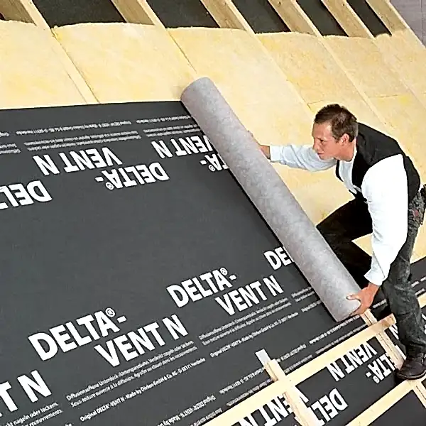 Delta Vent N, meyilli çatılarda difüzyona açık (nefes alan) su geçirmeyen çatı örtüsü kullanımında Türkiye’de en çok tercih edilen üründür. Yüksek buhar geçirgenliğine sahip, yırtılmaya karşı dayanıklı ve ekonomik fiyatlıdır. Polipropilen-örme muflon- folyo kombinasyonundan oluşan 3 katmanlı çatı örtüsüdür. Birim ağırlığı 130 g/m², ebatları: 1.5m x 50m olup stoklarımızda mevcuttur. -40⁰C ile +80⁰C aralığında kullanıma uygundur.