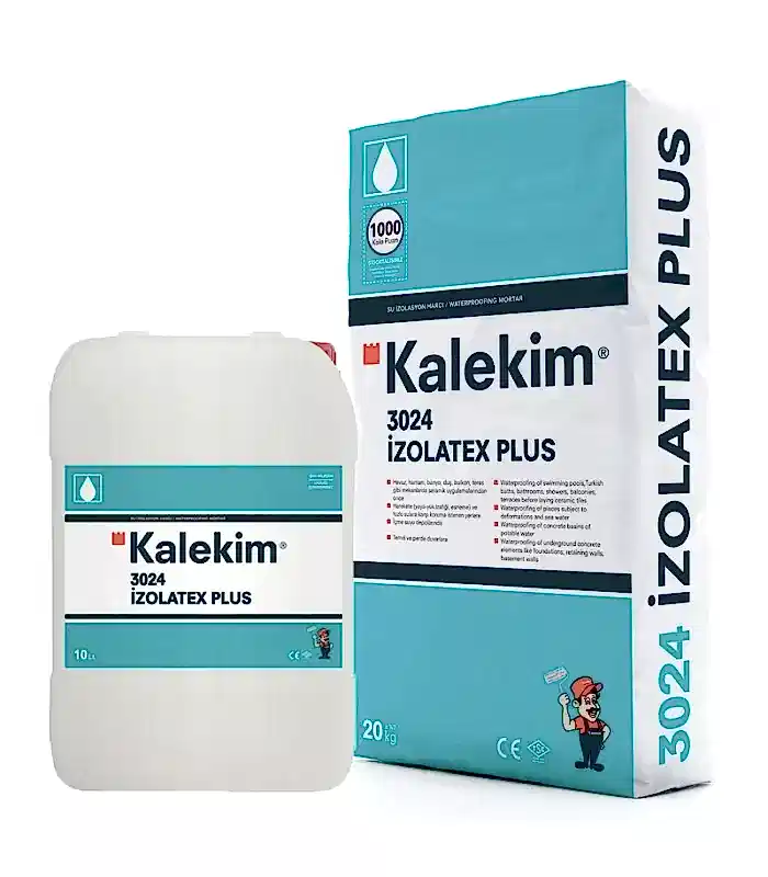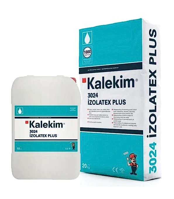 Kalekim İzolatex Plus ekstra elastik, tuzlara karşı etkin bir engel oluşturan, iç ve dış mekanlarda uygulanabilen, emülsiyon polimer esaslı sıvı bileşen, su geçirimsizliği ve işlenebilirliği artırıcı kimyasal katkılar içeren çimento esaslı toz bileşenden oluşan, su yalıtım ve beton koruma harcıdır.