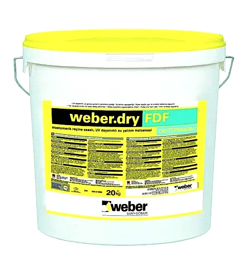 Weber Dry FDF PLUS Elastomerik reçine esaslı , kullanıma hazır, UV dayanımlı süper elastik su yalıtım malzemesi.