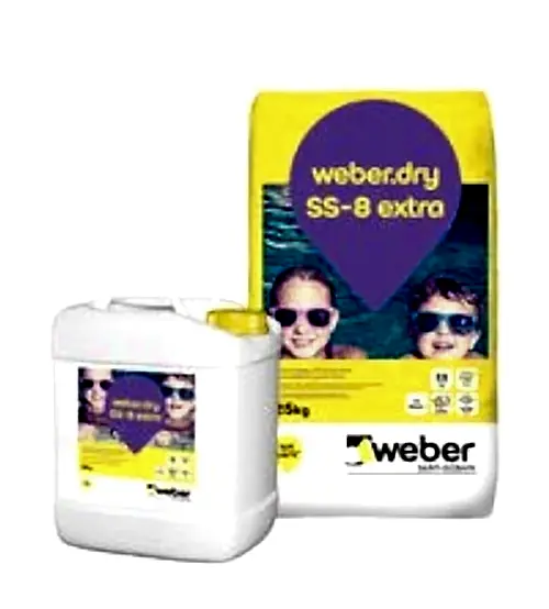 Weber DRY SS-8 Polimer emülsiyon modifiyeli, çimento esaslı , çift komponentli, tam elastik su yalıtım harcı