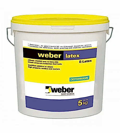 Weber latex, yüksek nitelikli sıva ve harç elde etmek, aderans köprüsü oluşturmak, su geçirimsizliği ve elastikiyeti artırmak amacıyla kullanılan özel katkı malzemesidir.