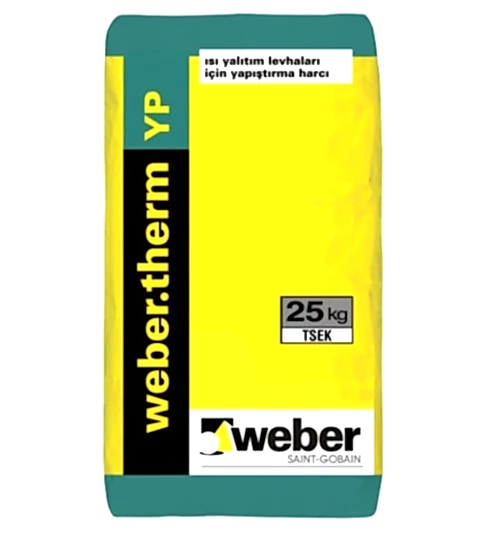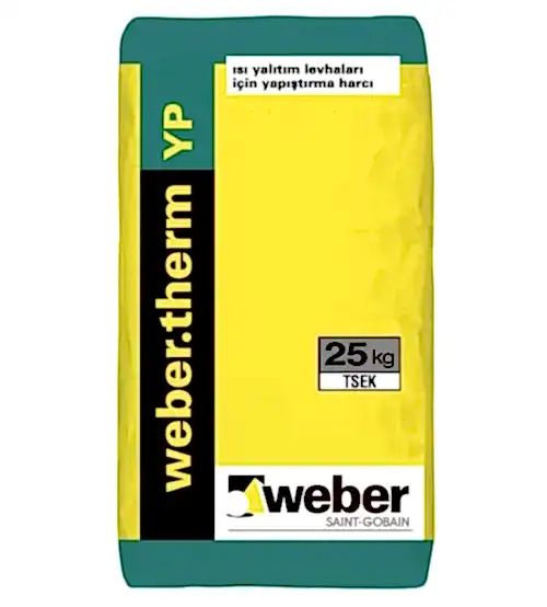 Ortalama 5,5 kadar su ile 25 kg.`lık weber.therm YP, tercihen düşük devirli bir mikser veya mala ile topak kalmayacak şekilde iyice karıştırılmalıdır.