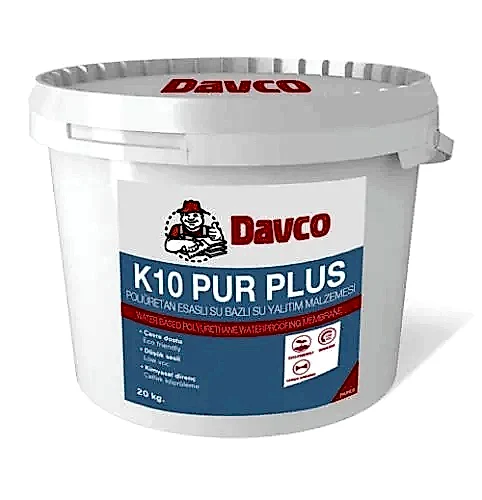 K10 PUR Plus, su bazlı poliüretan esaslı, yüzeyde su geçirimsiz elastik membran oluşturan tek bileşenli, hızlı kuruyan, mükemmel kimyasal dayanıma sahip, kullanıma hazır su yalıtım malzemesidir.